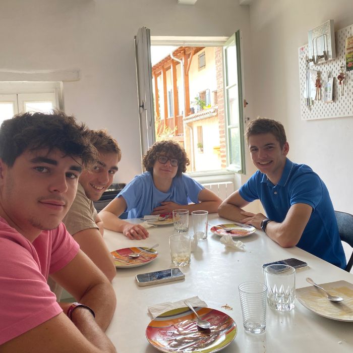 A midi, nous mangeons tous ensemble. J’ai pu goûter beaucoup de bonne nourriture française et j’ai appris de nombreuses coutumes gastronomiques comme la manière de couper le fromage ou le pain.